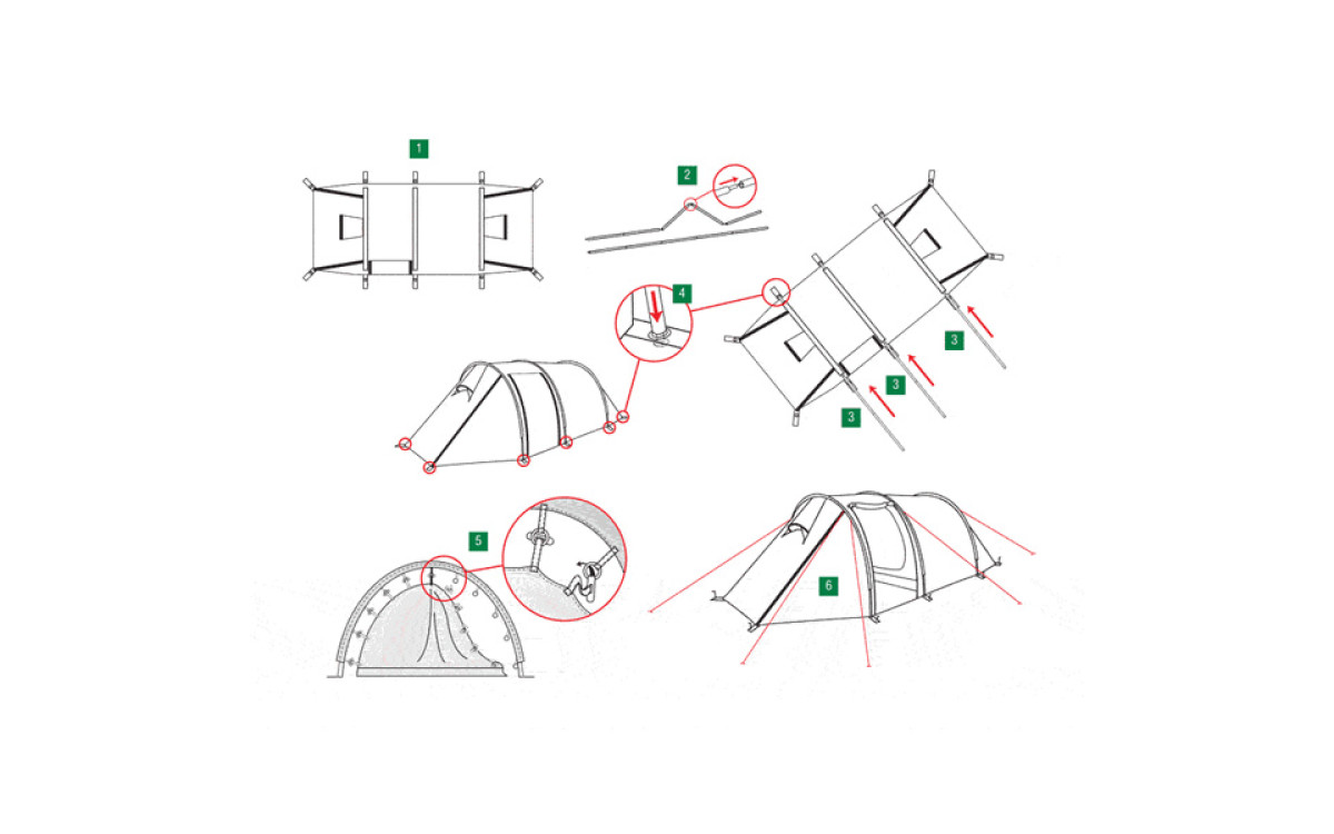 - Узлы палатки, испытывающие высокие нагрузки, усилены более прочной тканью.