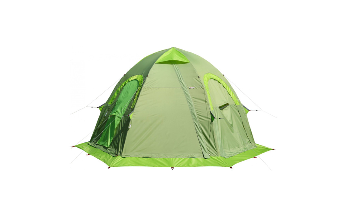 - Жесткий и прочный каркас палатки выдерживает экстремальные нагрузки. Обтекаемая куполообразная форма и силовая система креплений предусматривают возможность эксплуатации палатки в штормовую погоду.