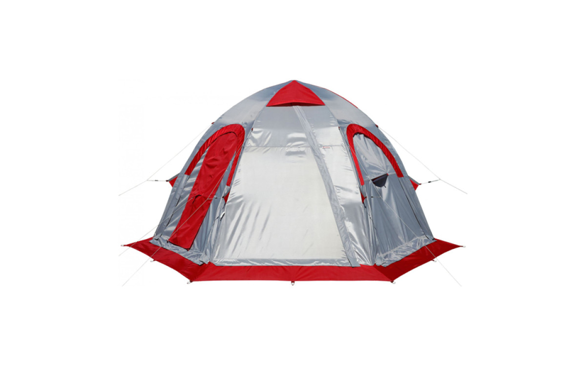 - Жесткий и прочный каркас палатки выдерживает экстремальные нагрузки. Обтекаемая куполообразная форма и силовая система креплений предусматривают возможность эксплуатации палатки в штормовую погоду.