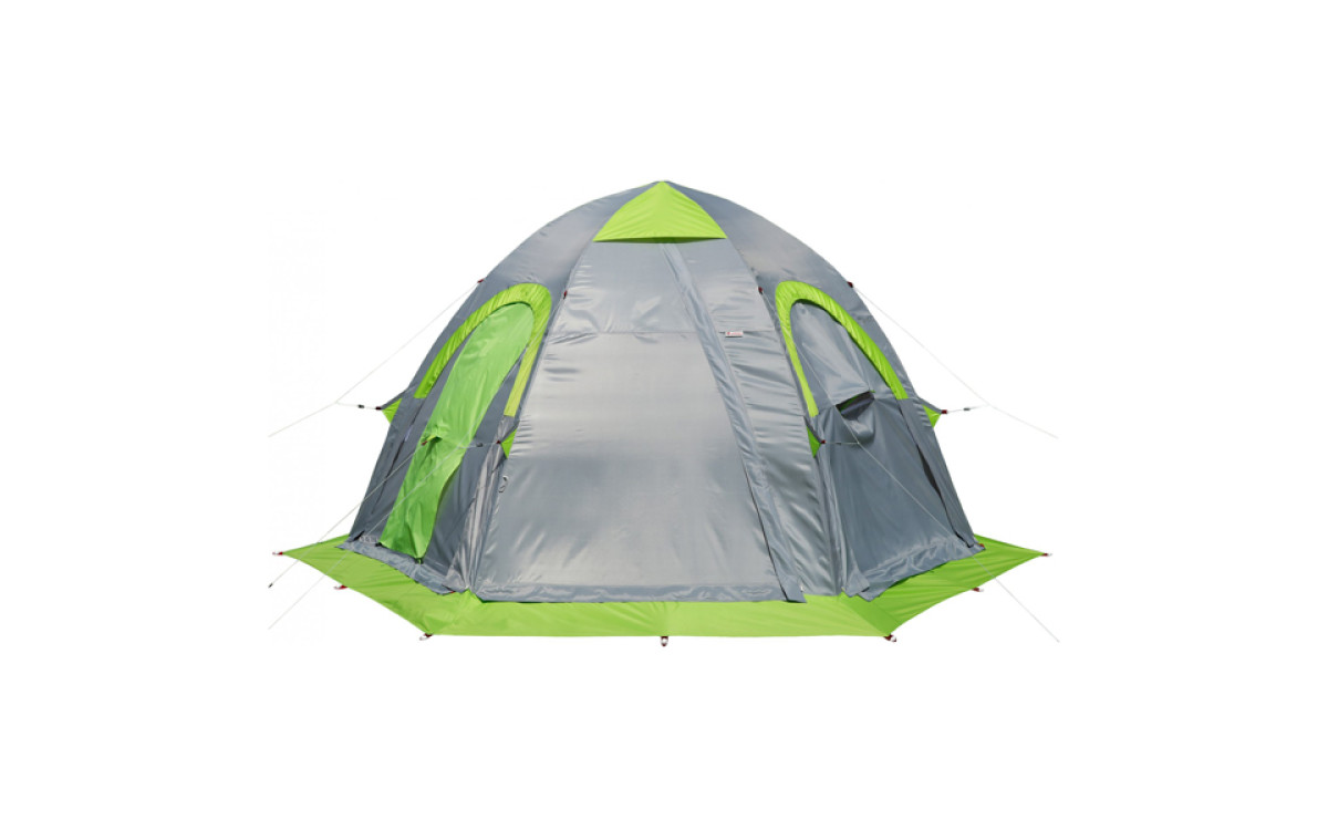 - Жесткий и прочный каркас палатки выдерживает экстремальные нагрузки. Обтекаемая куполообразная форма и силовая система креплений предусматривают возможность эксплуатации палатки в штормовую погоду.
