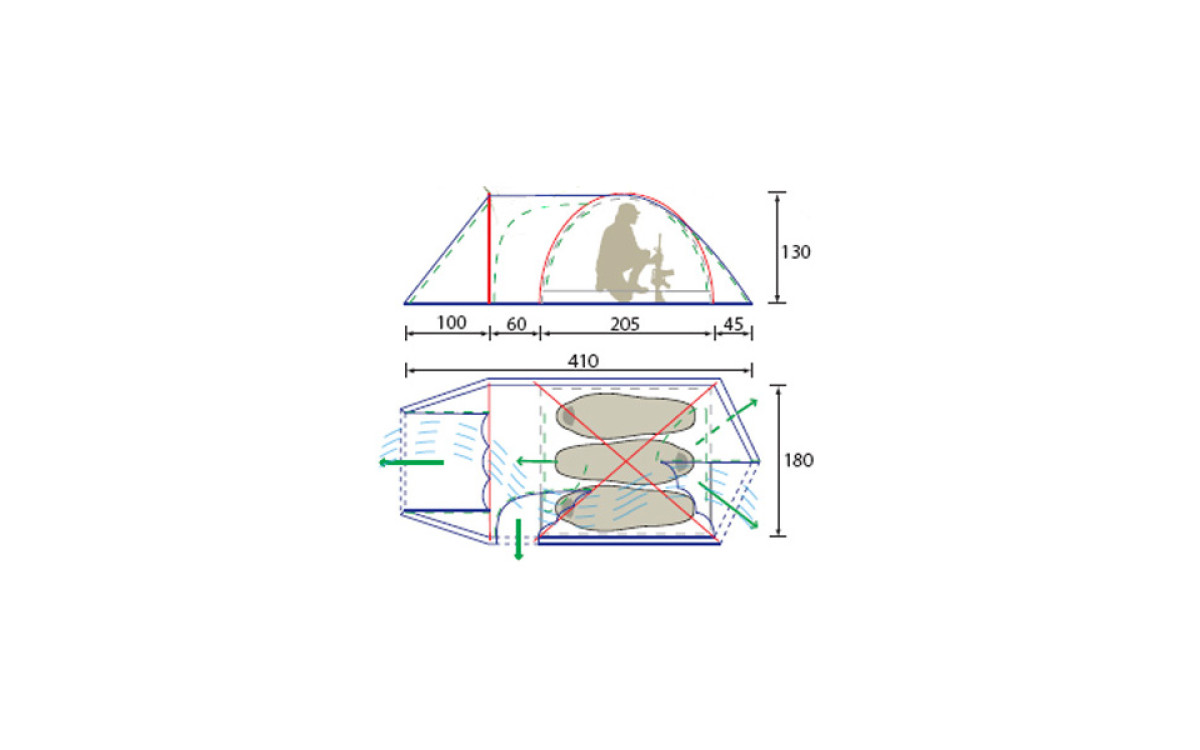 - Тент: Polyester 195T RipStop PU 6000 mm