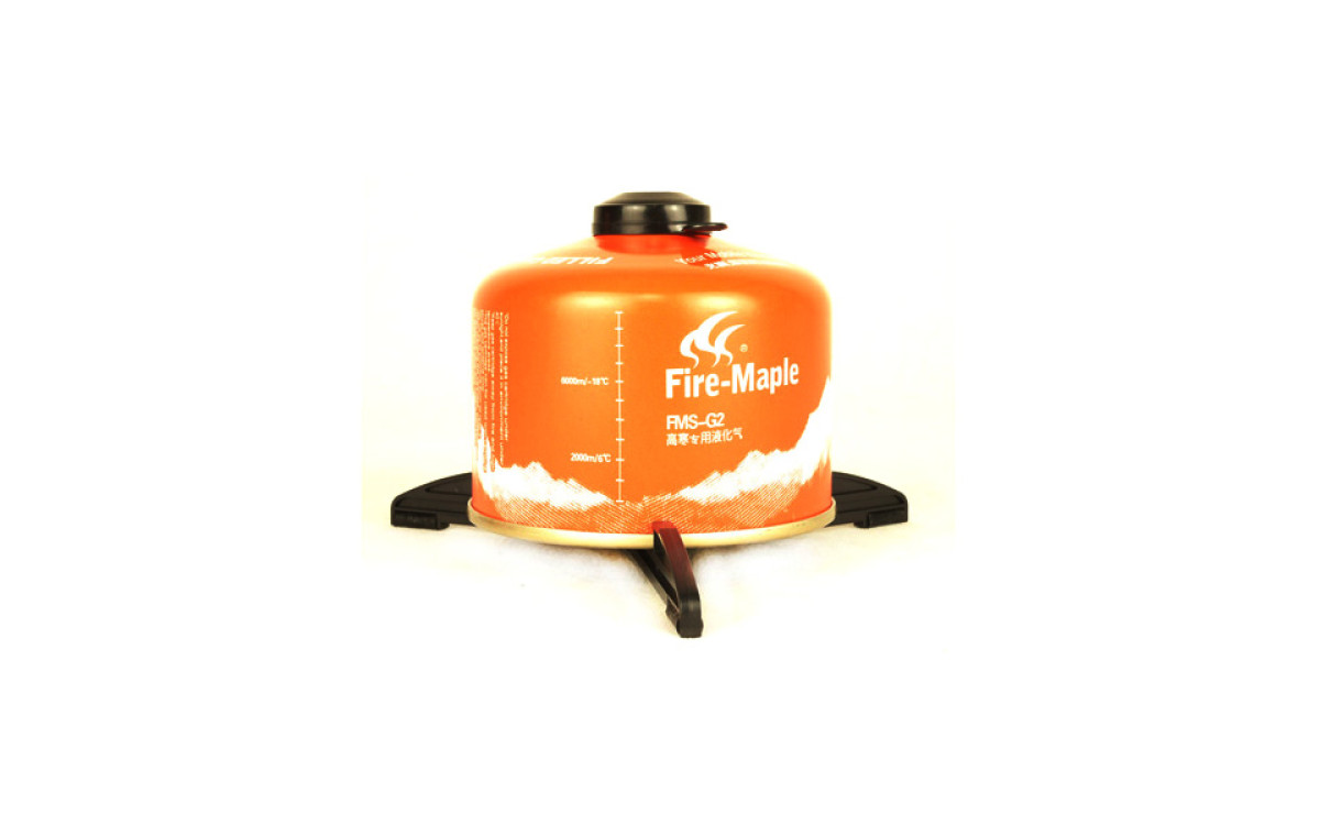 Подставка крепится на дно сменного газового картриджа. На каждой опоре подставки имеются резиновые, противоскользящие накладки, что позволяет установить горелку с картриджем на любую поверхность.