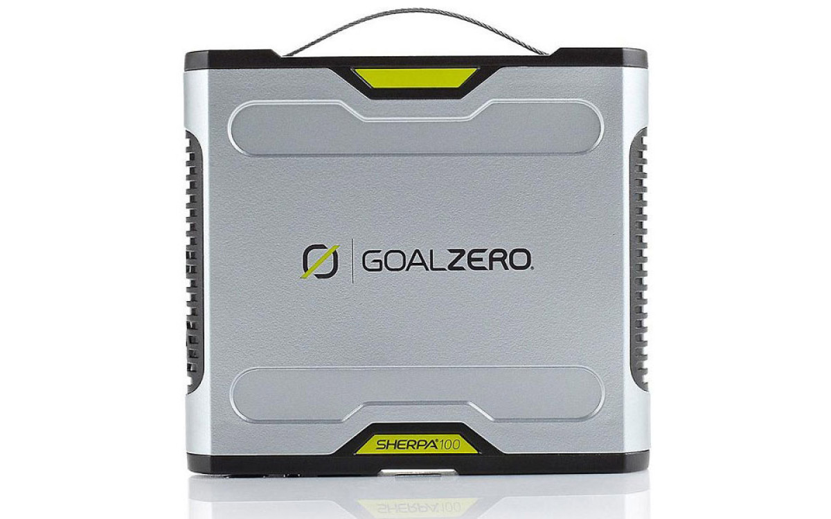 - Различные варианты подзарядки. Источник питания Sherpa 100 можно заряжать от сети 220 В, через разъем автомобильного прикуривателя, а также от солнечной панели Goal Zero.