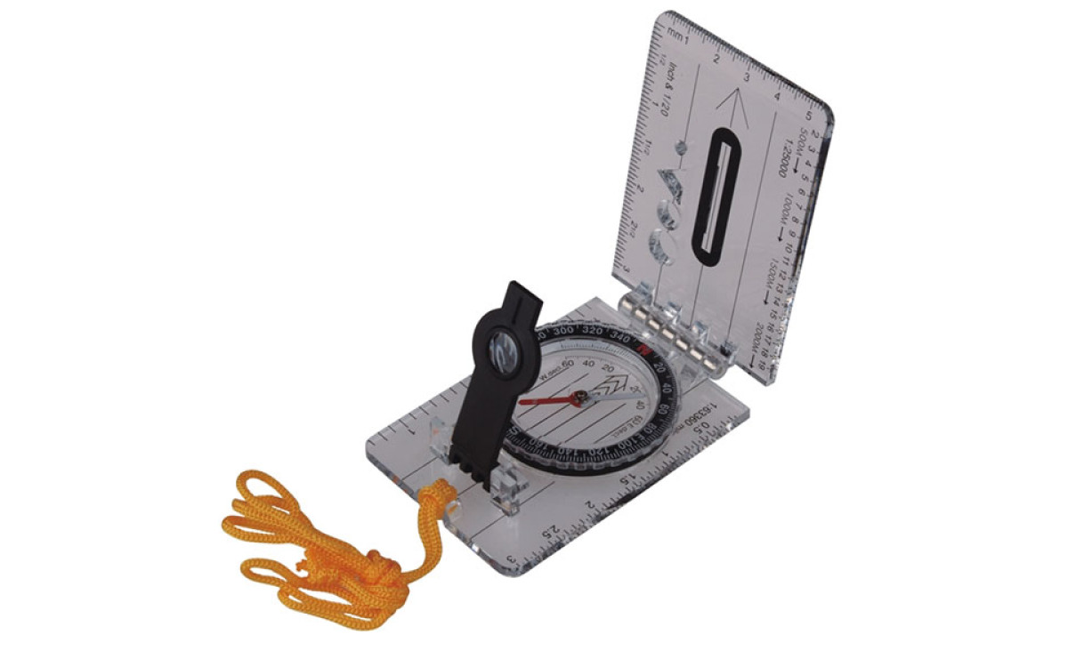 Раскладной компас классического вида. Оснащен линейкой, различными шкалами и поворотным безелем. Компас заполнен жидкостью для большей точности показаний. В комплекте с компасом поставляется шнурок.