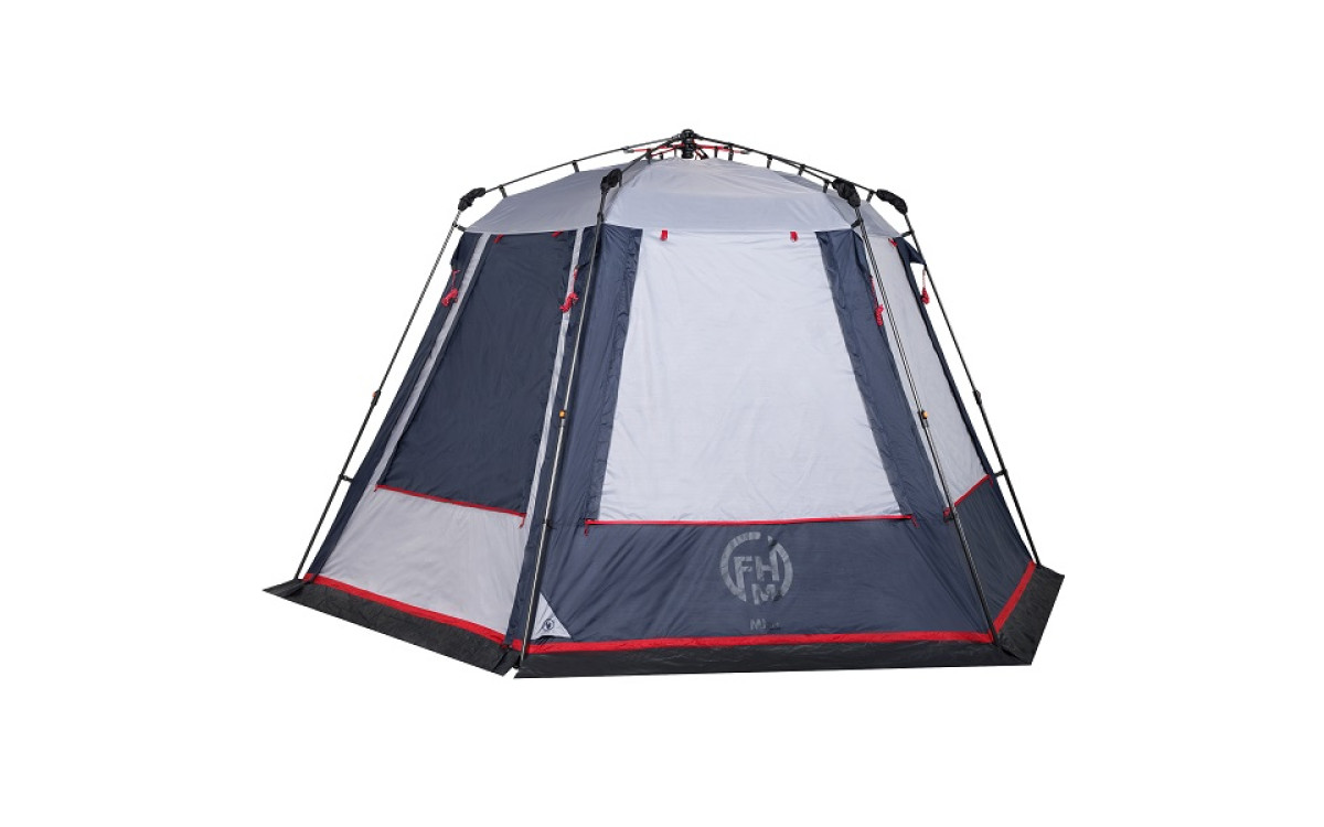 FHM Mira - большой кемпинговый шатер с полуавтоматическим каркасом без проблем разместит до 8 человек за столом, оставляя возможность организовать кухню и хранение вещей. Благодаря конструкции, тент ставится за считанные минуты в любых условиях.