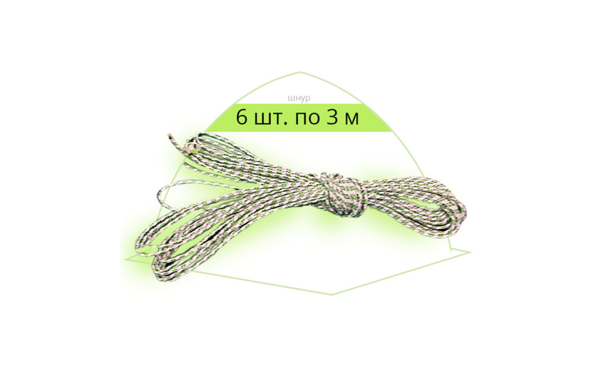 Шнур предназначен для крепления палатки к грунту.Шнур пропускается через петлю крепления растяжки на палатке и крепится к ввертышу/колышку для надежной фиксации палатки.