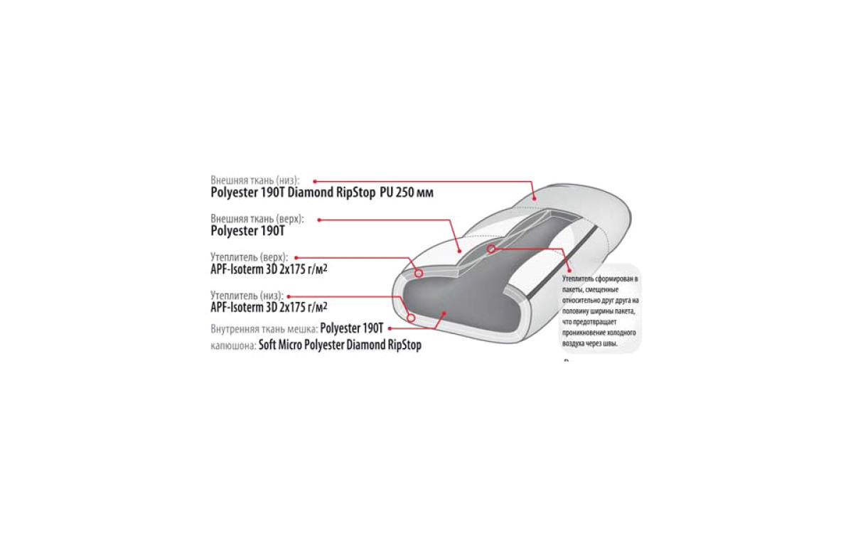 - концепция Protective Shell - защита от холода, ветра и влаги, долговечность спальника;