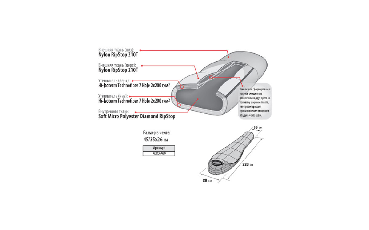 - концепция Protective Shell - защита от холода, ветра и влаги, долговечность спальника;