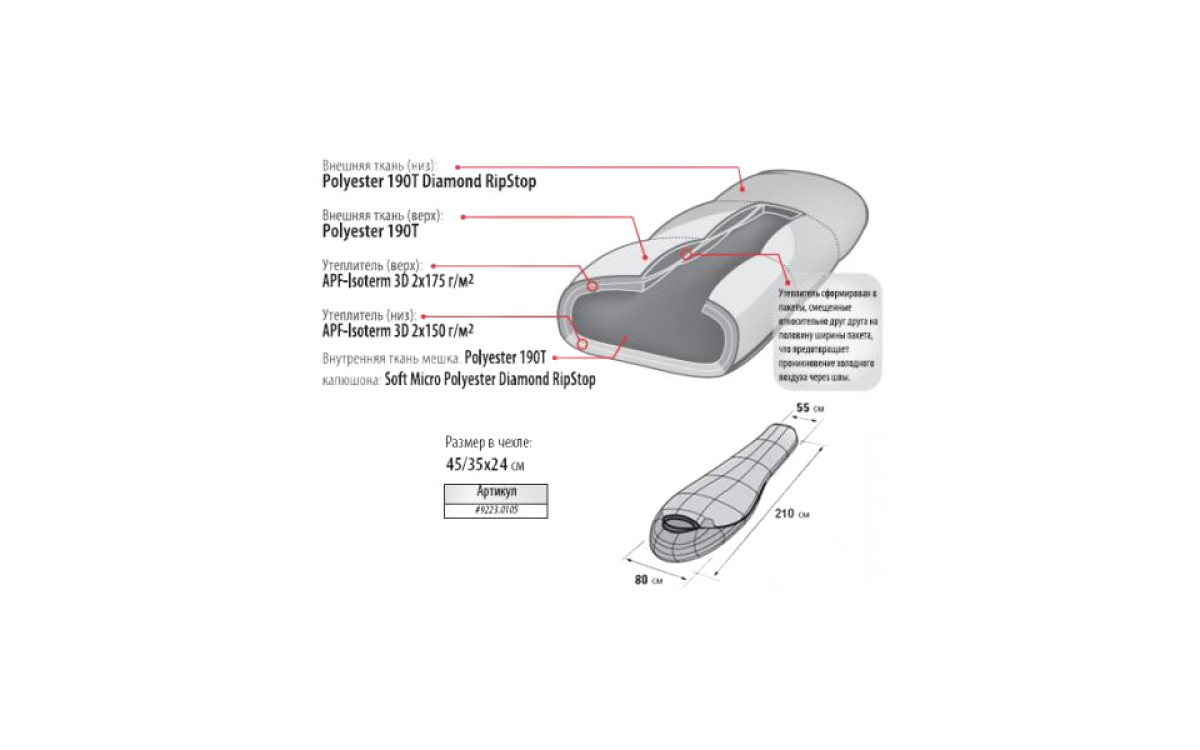 - концепция Protective Shell - защита от холода, ветра и влаги, долговечность спальника;