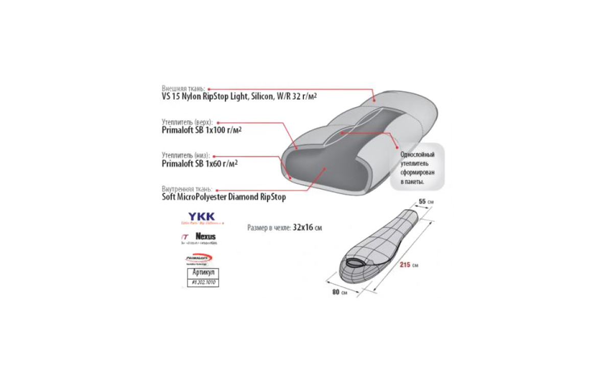 Зарекомендовал себя как один из лучших лёгких спальников по соотношению вес/температурный режим.