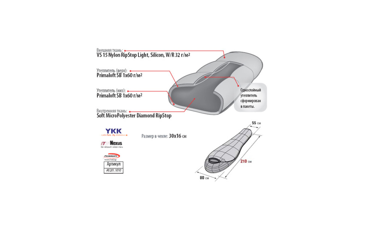 Самый лёгкий и компактный спальный мешок серии Platinum.