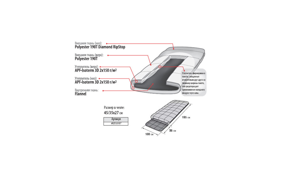 - концепция Protective Shell - защита от холода, ветра и влаги, долговечность спальника;