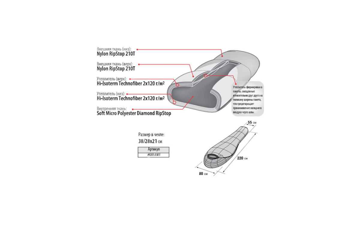 Наиболее популярный среди экстремальных туристов компактный и лёгкий трёхсезонный спальник.