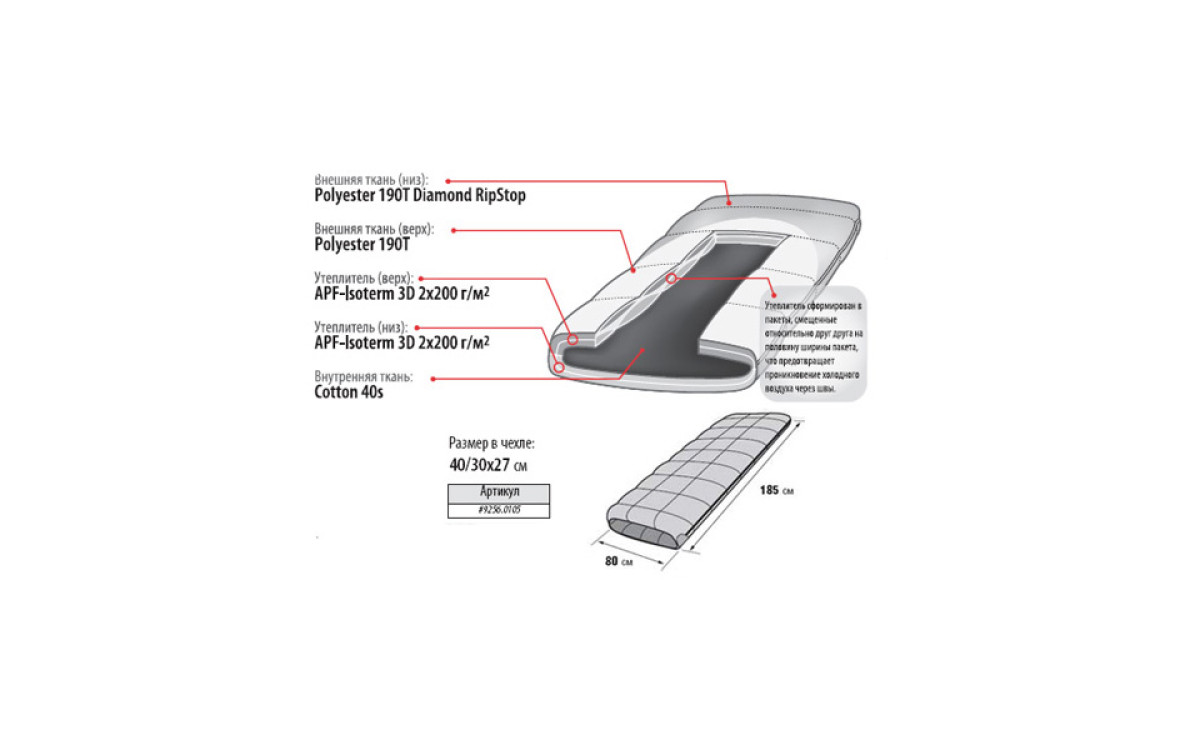 Как и у всех спальных мешков Alexika, конструкция этой модели отличается продуманностью и вниманием к мелочам.
