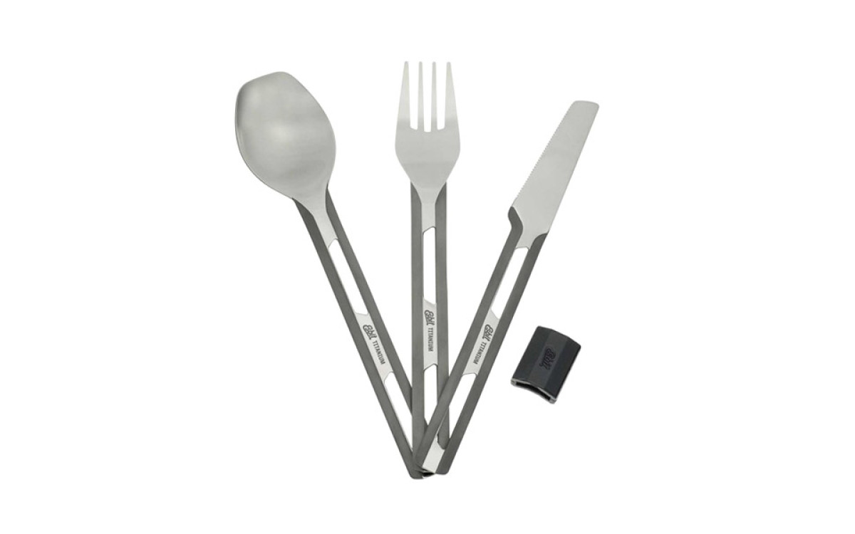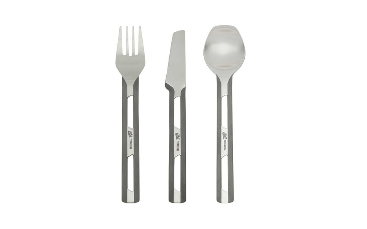 Надежный набор титановых столовых приборов, пригодных для универсального использования.