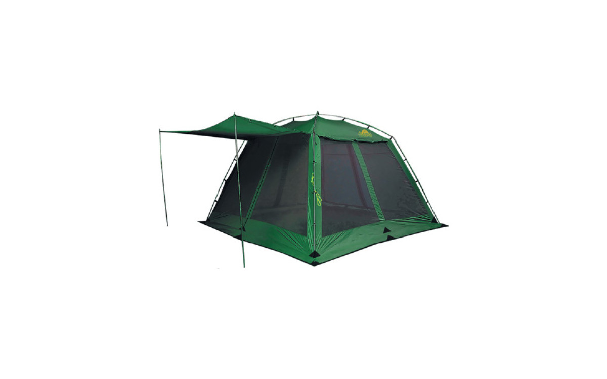 Большой каркасный тент для размещения столовой или кухни. Дуги сделаны из алюминия, что уменьшает общий вес тента на 2,5 кг.