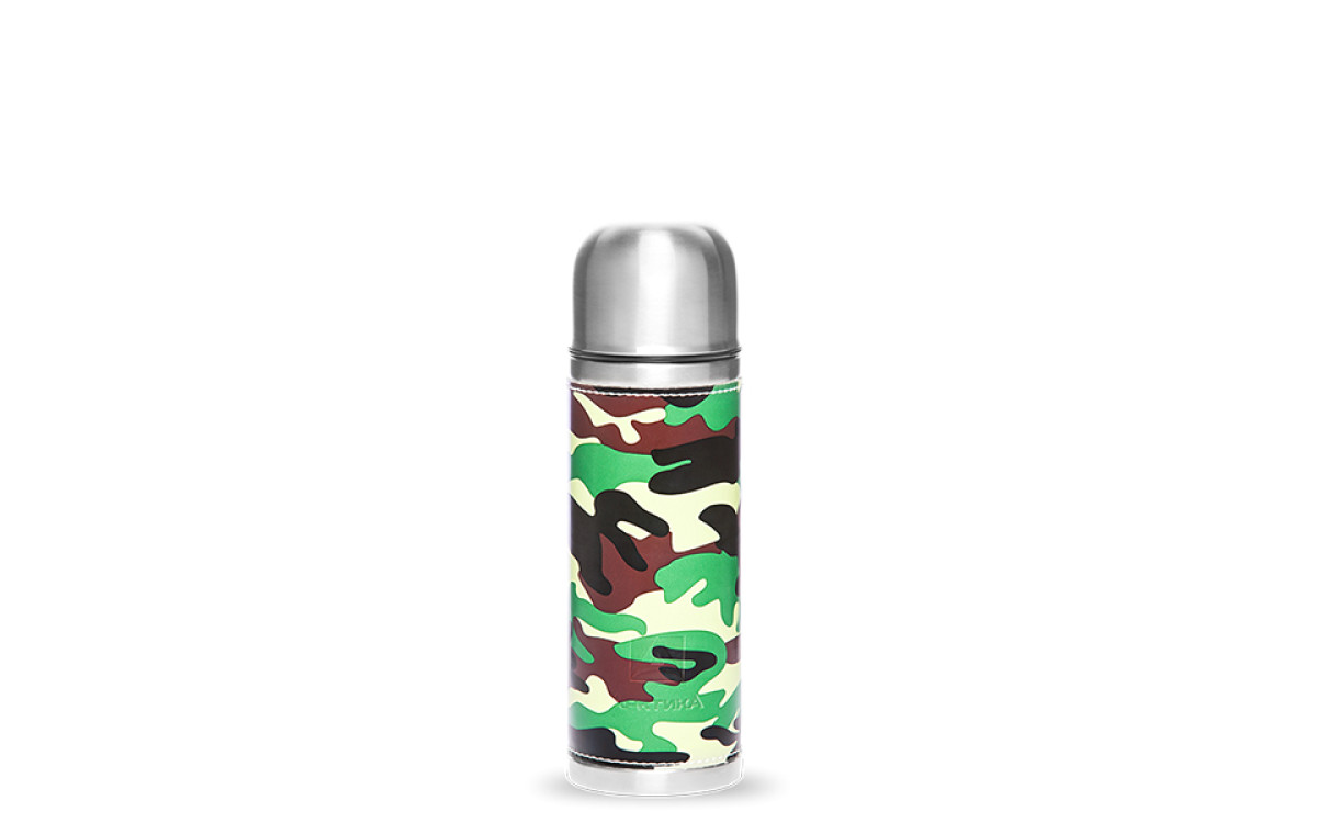 Стильные термосы в нескольких цветовых решениях с приятным на ощупь покрытием, имитирующим «кожу канадского бизона».
