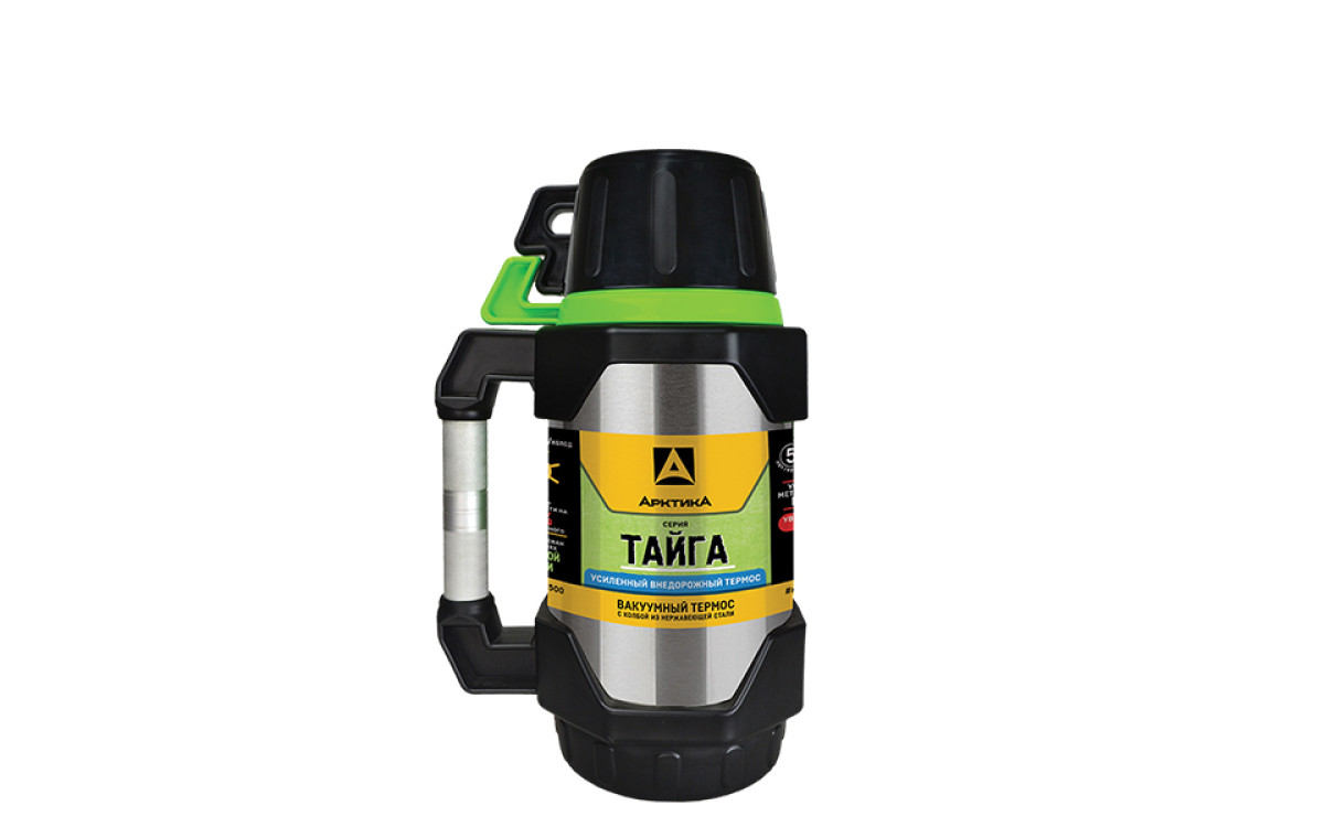 Степень вакуума выше обычного на 50%, стенки термоса толще на 20%, а пробка имеет двойную прокладку. Термос серии «Тайга» прошел испытания в Арктике и показал достойные результаты.