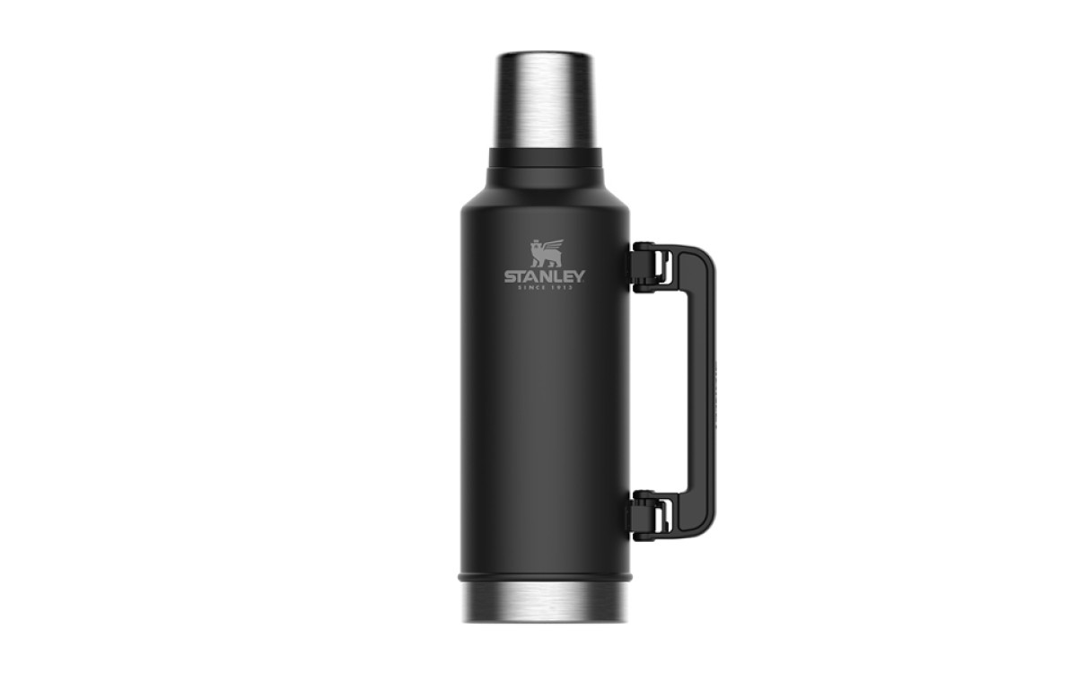 Термос с удобной складной ручкой сохранит ваши напитки горячими на продолжительное время. Изготовлен из безопасной для человека нержавеющей стали 18/8. Держит тепло: 45 ч. Держит холод: 48 ч. Цвет: черный. Объем: 1.9 л.
