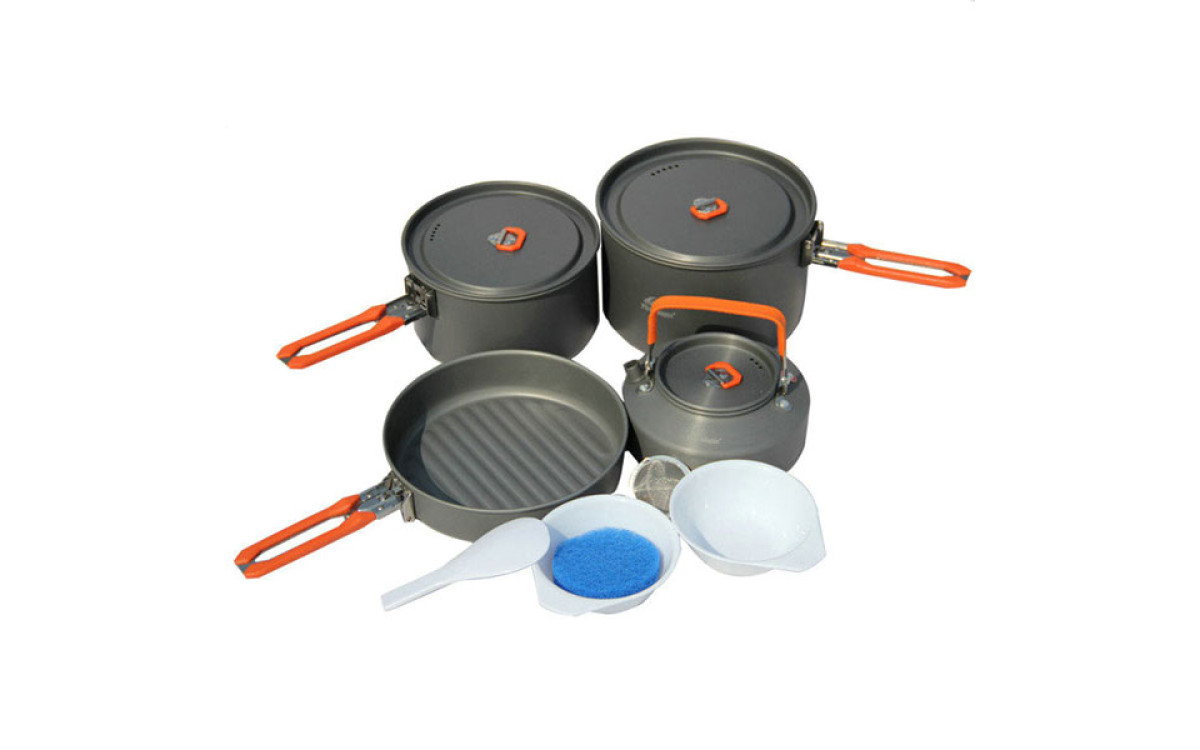 В набор FEAST 4 включено все, о чем вы мечтаете: котелки для приготовления еды, сковорода и чайник для кипячения воды.