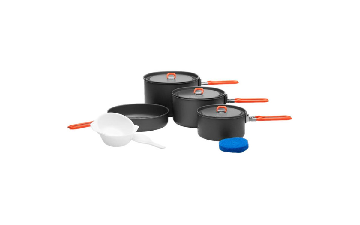 Для решения всех проблем с походной кухней возьмите с собой набор посуды портативной FEAST 5. Он прекрасно подойдет для приготовления еды на большую семью или компанию друзей.