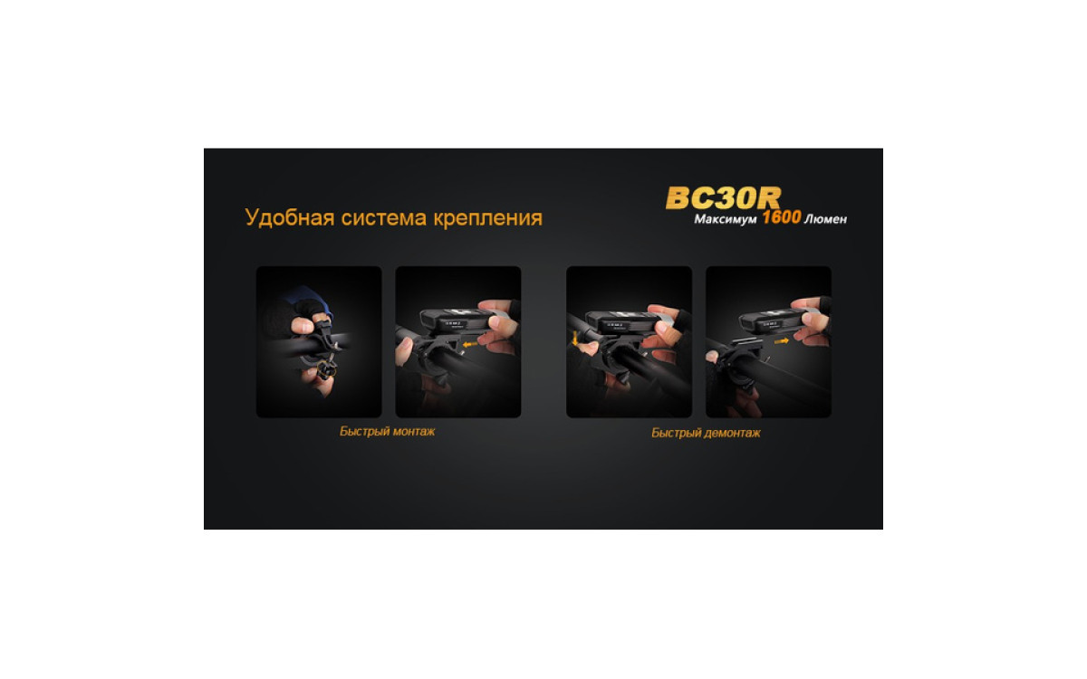 - Быстросъемное крепление на руль, простая и надежная регулировка направления луча