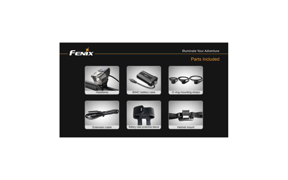 - В комплекте: батарейный блок с чехлом, удлинитель, крепеж на руль и шлем