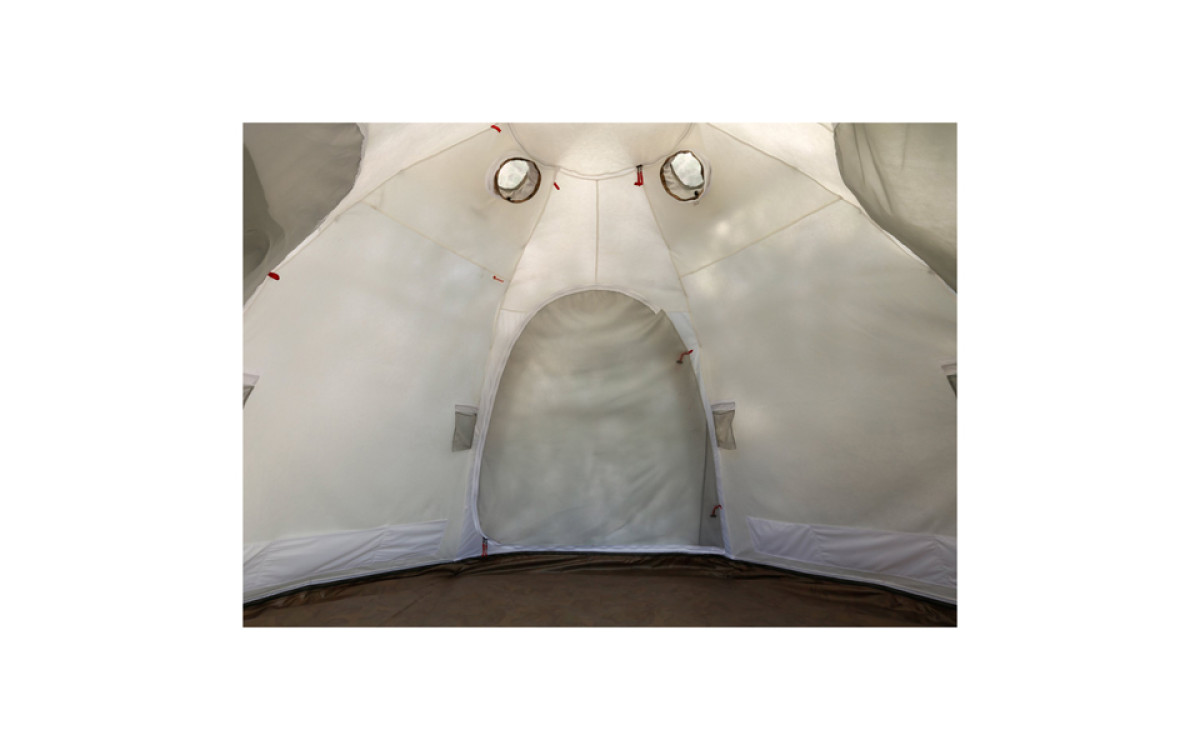- В потолочной части тента встроены два вытяжных клапана и люк на молнии для доступа к механизму сложения палатки. Люк позволяет складывать палатку вместе с внутренним тентом.
