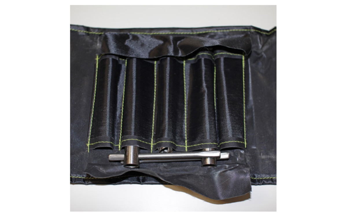 - Комплект из 5 стальных буров-ввертышей с подвижной ручкой, упакованных в чехол-патронташ.