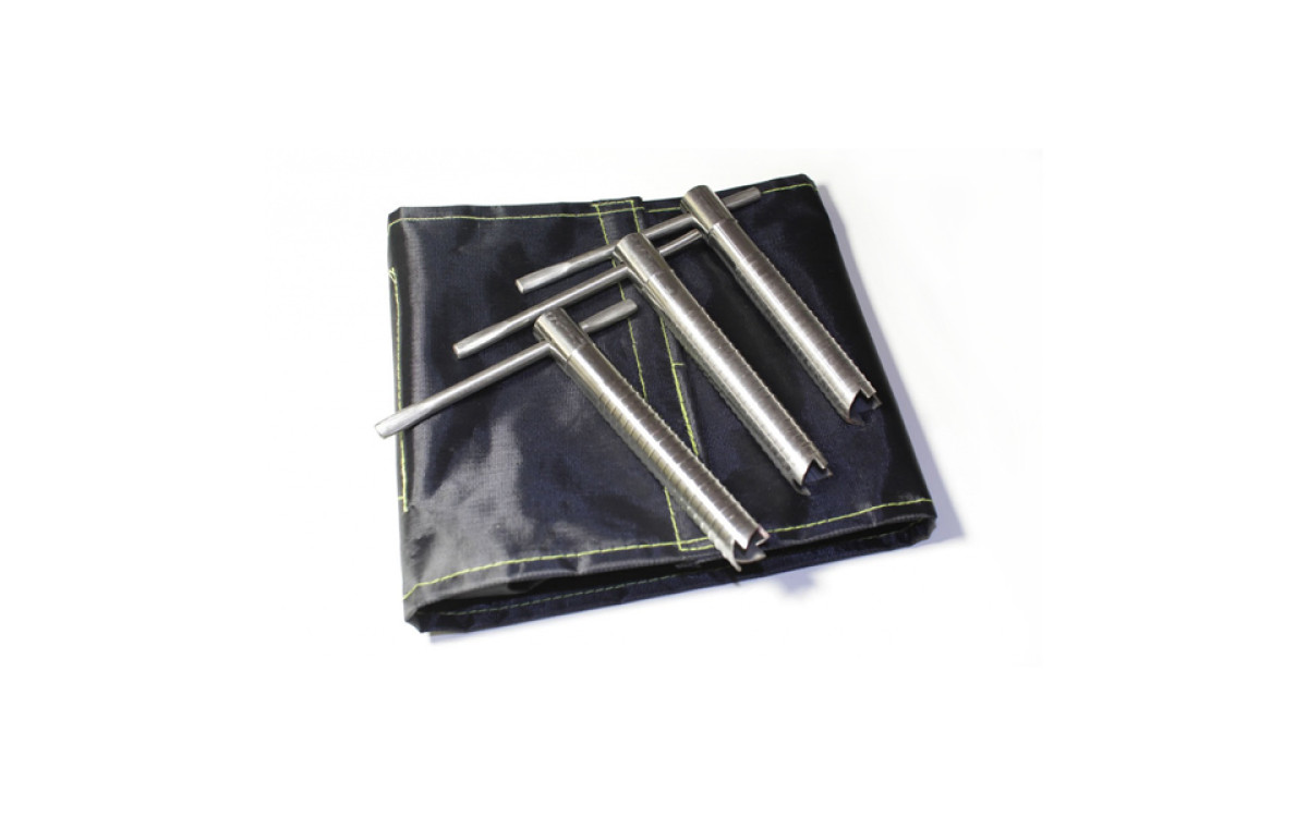 - Комплект из 6 стальных буров-ввертышей с подвижной ручкой, упакованных в чехол-патронташ.