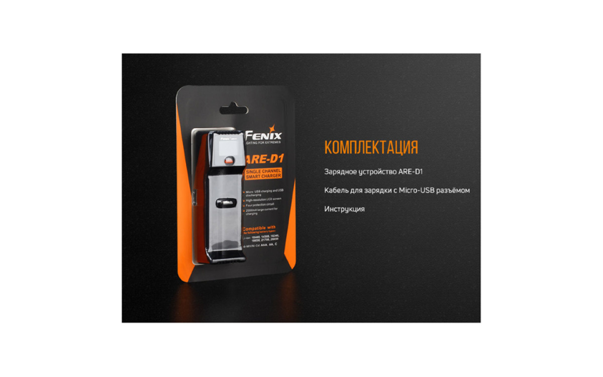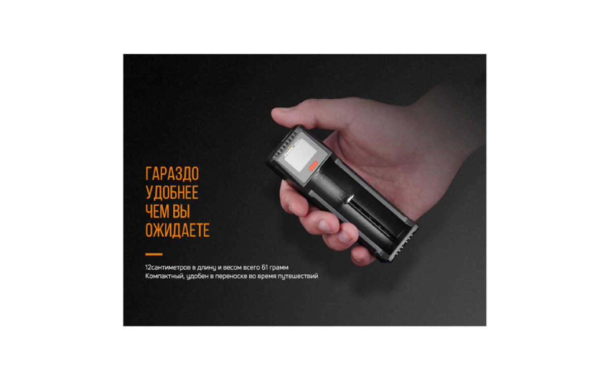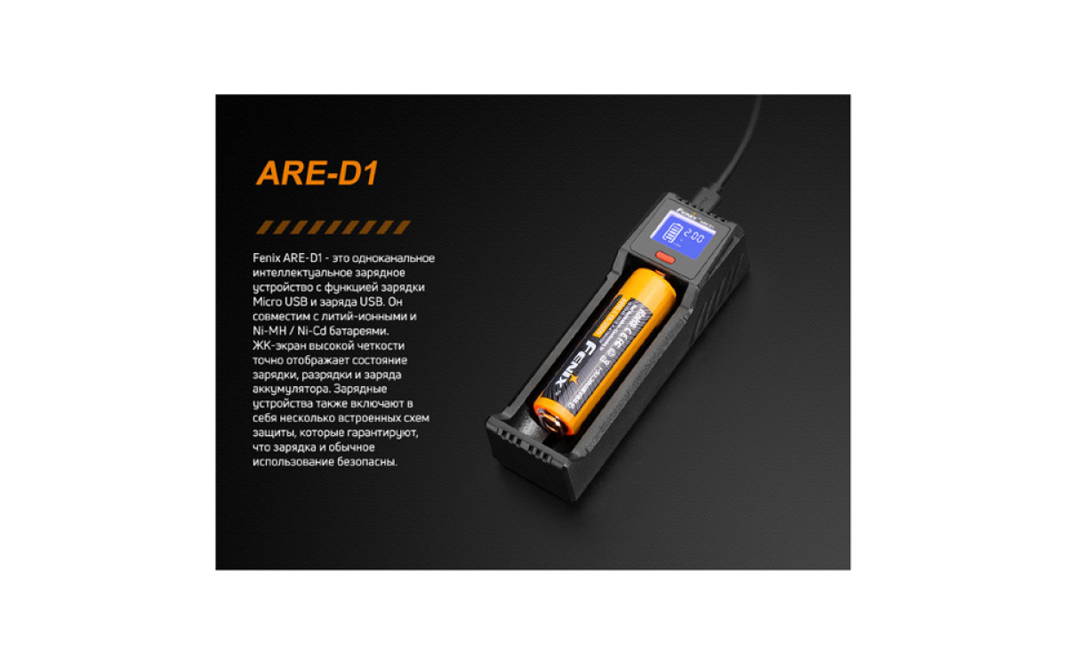 Компания Fenix разработала зарядное устройство Fenix ARE-D1 для тех пользователей, которым необходимо универсальное оборудование для аккумуляторов разного типа. Эта модель поддерживает работу с 9 типами элементов питания. К тому же, она компактная, поскольку располагает всего 1 слотом. Поэтому Fenix ARE-D1 так хорошо подходит для путешественников. Впрочем, использовать зарядное устройство дома тоже удобно.